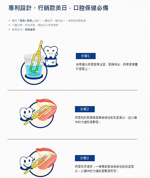 專利設計有短刷毛跟刮片,先刷後刮的正確動作,清潔舌苔更乾淨,