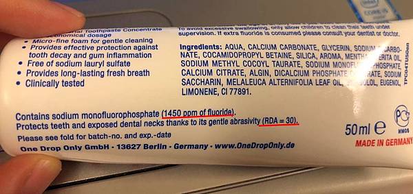 也有標示氟離子濃度1450ppm,符合現在最新國外研究證實牙膏含氟量超過1000ppm才能有效防蛀,刷完牙的口氣清新感會著迷,就這樣持續用了7年。